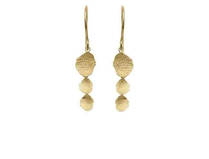 Cast from soft orchid petals, these delicately arranged statement earrings are the perfect accessory to finish off an elegant look. The unique three petal vertical design is accented by 18K gold vermeil, highlighting the organic texture of the petals. True to nature, the intricate character of the petals is visible in the unique organic texture. Handmade in Hawaii.