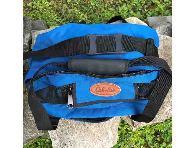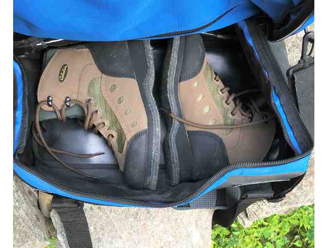 Cabela's Felt Soled Size 7 Wading Boots and Royal Blue Gear Bag