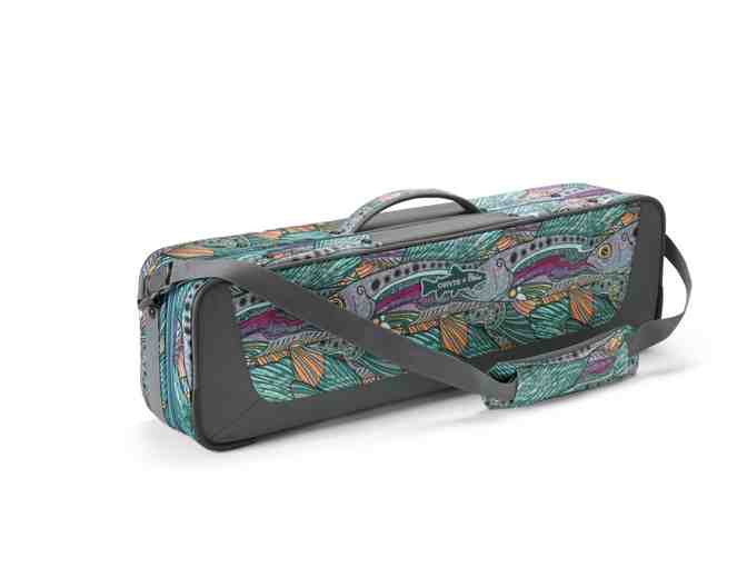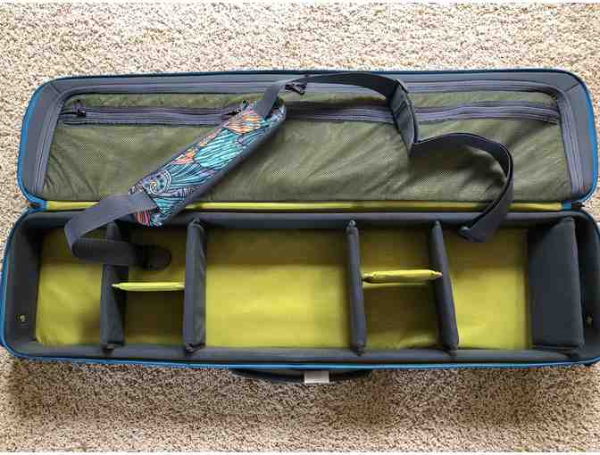 Along with Fishewear owner Linda Leary, Orvis CEO Perk Perkins helped design this Safe Passage Carry It All bag to meet the needs of the traveling angler and it's been updated! Rods are stored in a separate, padded compartment in the top. The bottom half has adjustable dividers and is designed to hold other critical gear like reels, lines, fly boxes, sunglasses, pliers, and terminal tackle. Unique shoulder strap allows the bag to be carried in a number of ways, making those long walks in the airport a little easier. Designed to be carried on airplanes, the bag is rugged enough to be checked if necessary. Nylon is coated along the bottom of the pack for increased water resistance. Designed for the traveling angler!