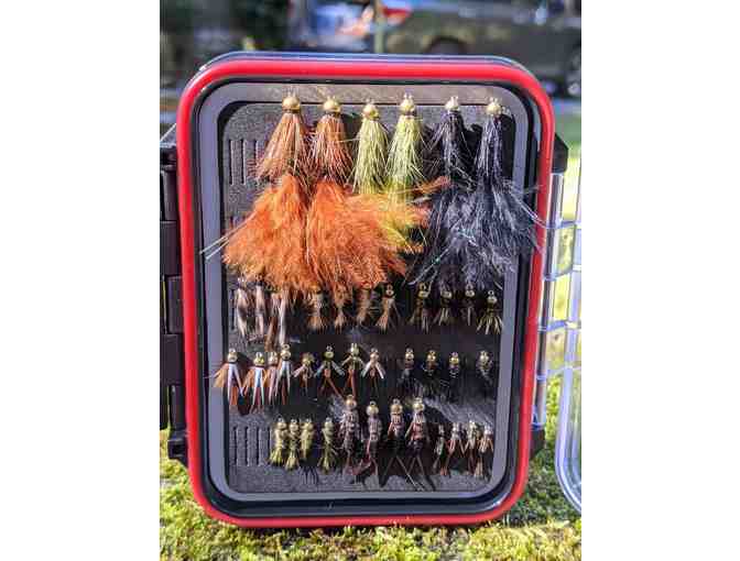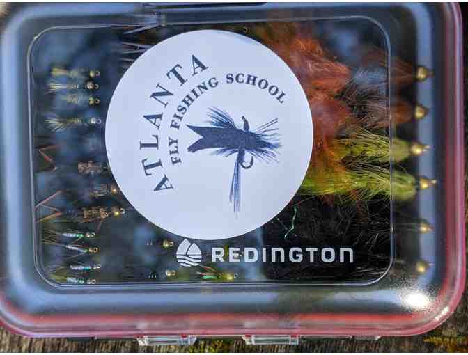 Redington double sided fly box with 92 flies donated by the Atlanta Fly Fishing School.