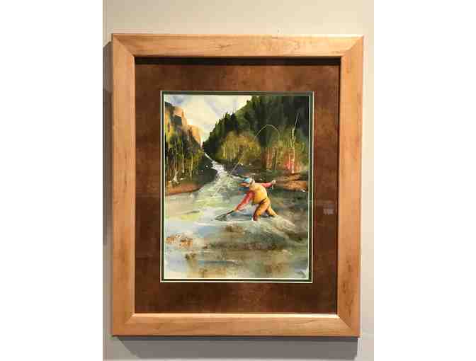 Casting for Recovery, Southern California proudly offers an Original Watercolor Painting by artist John Williams. Outer matting is copper/brown textured Interior matting is dark green.