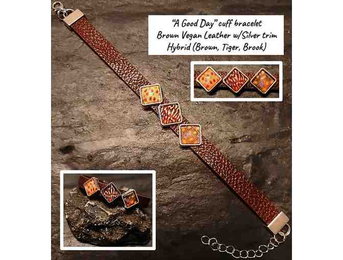 Check these out! Four unique bracelets featuring brown vegan leather and either silver or bronze trim.