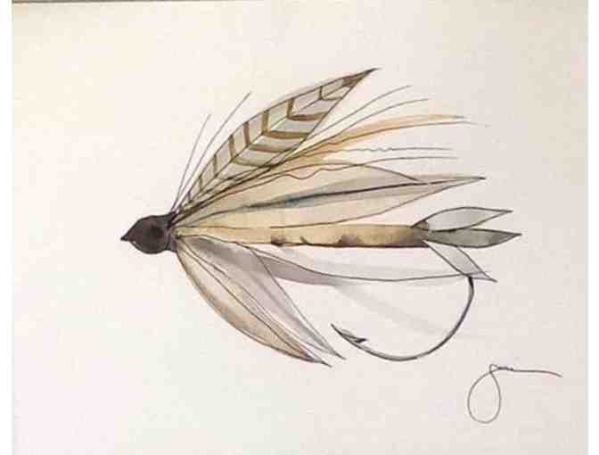 This is a perfect addition to any angler's home! Be the winning bidder and this 11" x 15" hand-painted watercolor fly will be yours. Check out Sallie Strickland's other work.