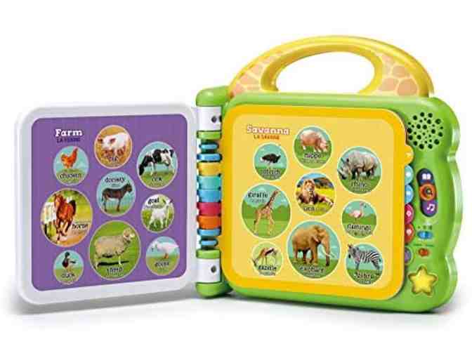Kids have a natural curiosity about animals, and this book provides lots of opportunities for exploration with illustrations and photographs of animals from the desert, savanna, rain forest and more. Switch the language setting to hear about the animals and listen to songs in either English or Spanish. Fun facts about animals promote early science awareness, making this book a must-have addition to every little learner's library.