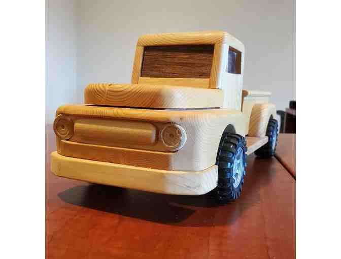 This unique wooden truck was hand-crafted by Henry "Hank" Kollross. After many years of working as a self-employed contractor/carpenter, he retired a few years ago after successfully battling leukemia.