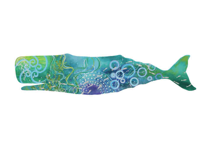 Whale is approximately 58" X 15" and can be displayed indoors or outdoors.