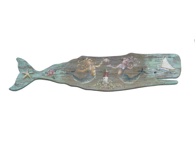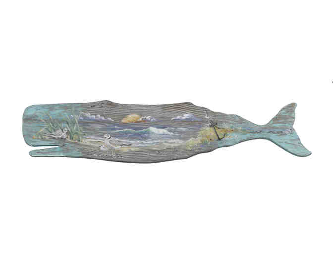 This whale is approximately 58" x 15" and is painted on both sides.