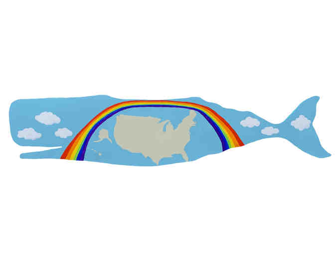 'Oh, does that star-spangled banner yet wave...'on one side. On the other is a rainbow with a map of the USA in the middle.