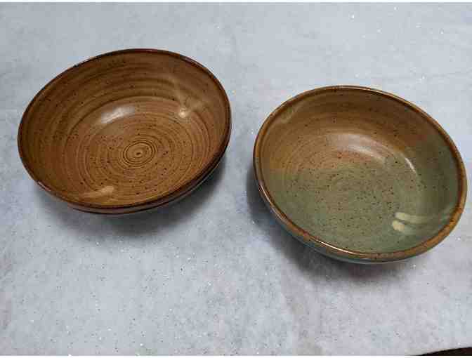 These bowls have a rustic glaze and are 5 1/2 inches in diameter and 1 3/4 inches deep.