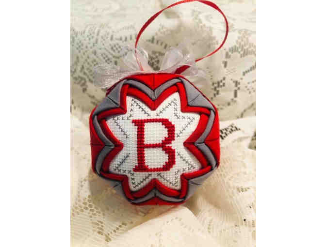 The front of the ornament is as shown, and the back can be personlized with a name, monogram, year, etc.