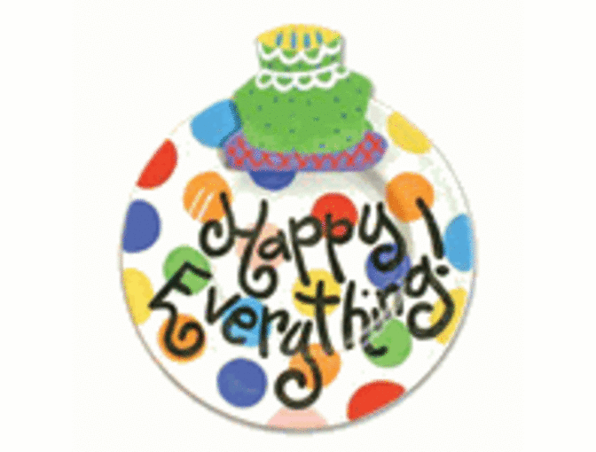 Purchase this bright and happy "Happy Everything" platter to remember to celebrate. Your platter comes with a plate stand and birthday cake attachment as well as a gift certificate for anohter attachment.
