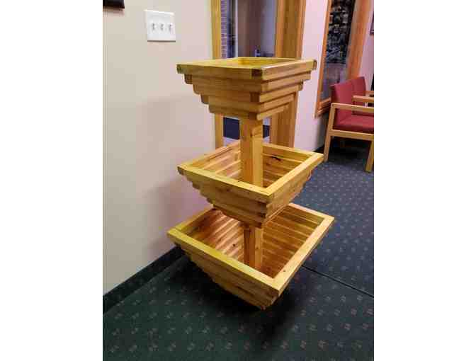 Beautiful 3-tier planter for garden use. Made out of pine.