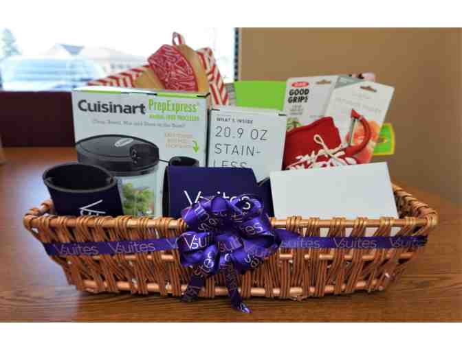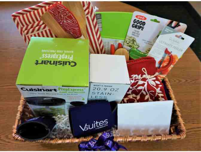 $150 worth of kitchen items plus $150 gift card to Sur La Table, which can be used for cooking classes or merchandise.