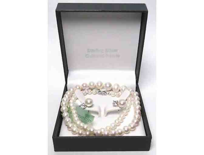 Pearls and Sterling Silver Necklace and Earring Set