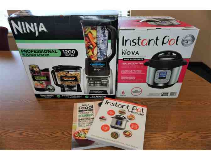 Please note: the ninja blender in picture #3 is the actual blender you are bidding on. This package also includes the Insta Pot and (2) cookbooks.
