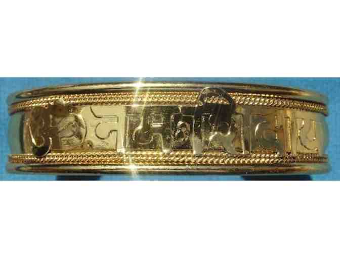 Om Namah Shivaya is an ancient mantra given by Shri Babaji to us. Besides the healing grace of Shri Babaji that it carries, the metals are said to be very healing as well. Shri Babaji used to put these bracelets on our wrists (men's right and lady's left). This is the 5/8 wide one, normally worn by men, and is simply beautiful!