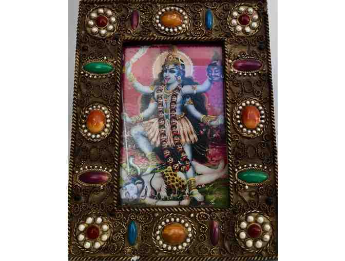 Powerful photo of Mother Kali in sweet frame measuring 9.5"x8". Enliven your wall or altar and home with this Kali image.