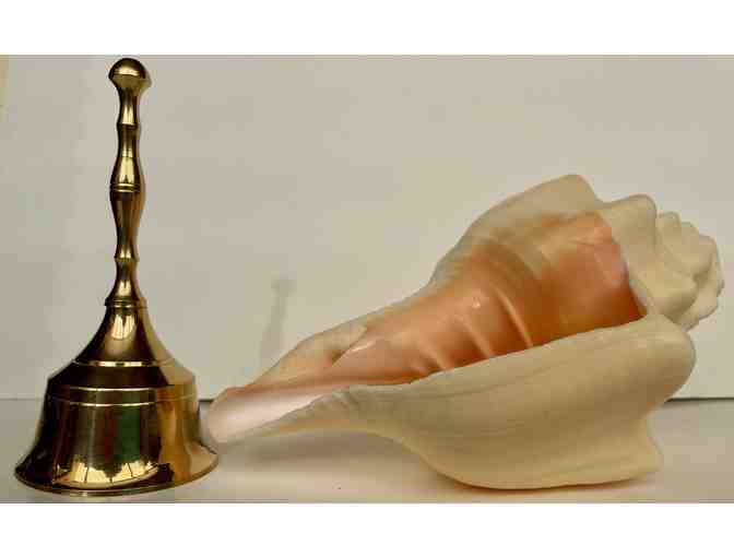 Conch Shell for Blowing (7") and Brass Bell (5")