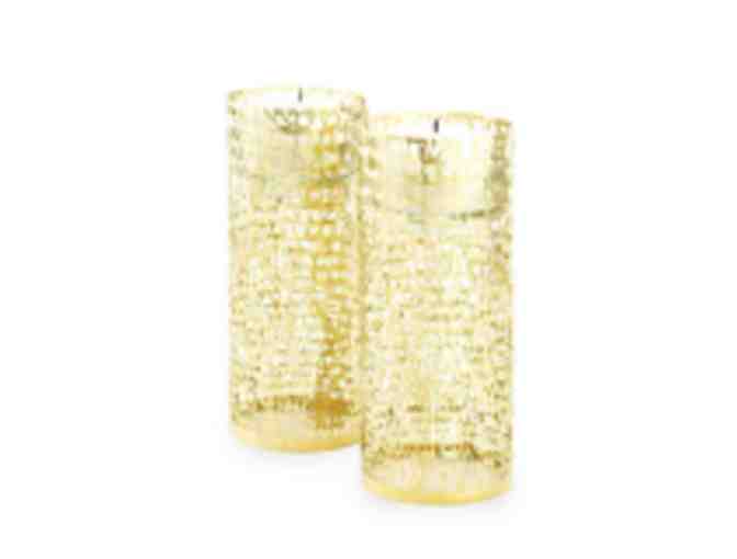 The Woman of Valor candlesticks, plated with either matte yellow gold or shiny white gold.