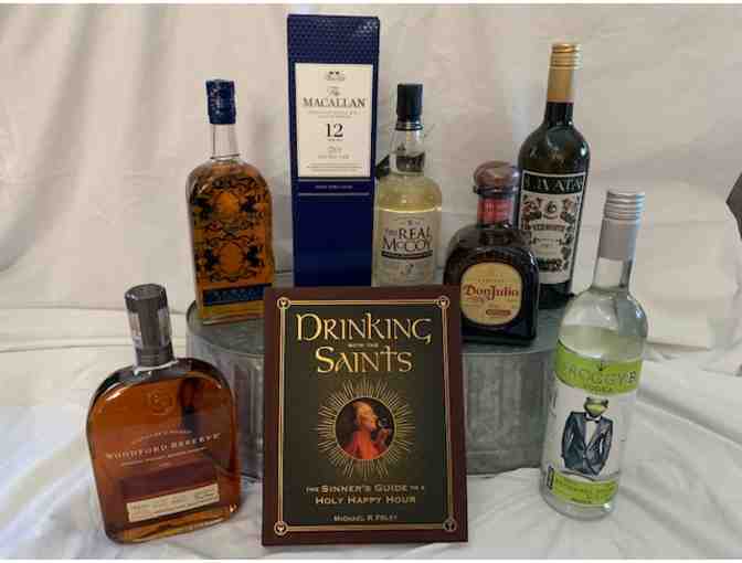 Looking to restock your bar or start a home bar? This liquor basket has a variety of bottles for straight up sipping or adding to mixed cocktails. Looking to try new drinks? The book "Drinking with the Saints" gives a daily history on that day's saint and recipe for a cocktail to go with it.