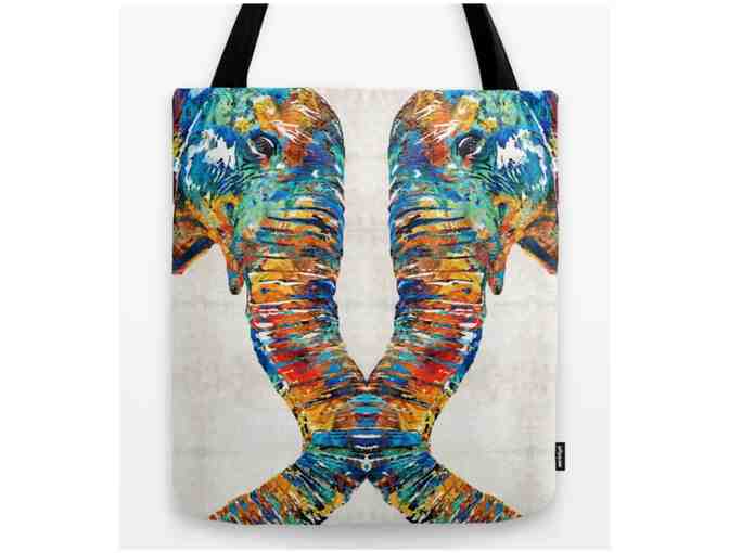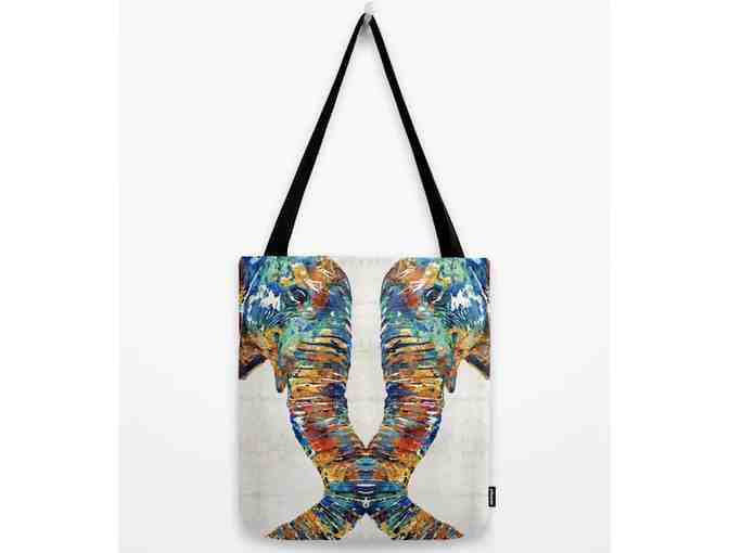 Art on Premium Tote: COLORFUL ELEPHANTS (16 inches)