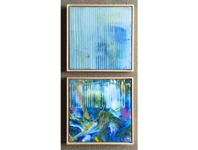Kerr. This diptych (2 pieces) is acrylic on canvas with a high gloss resin finish. Both framed pieces measure 10.63 x 10.63". From the artist:
