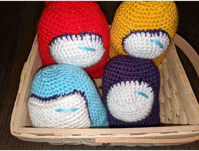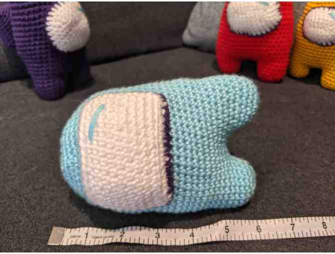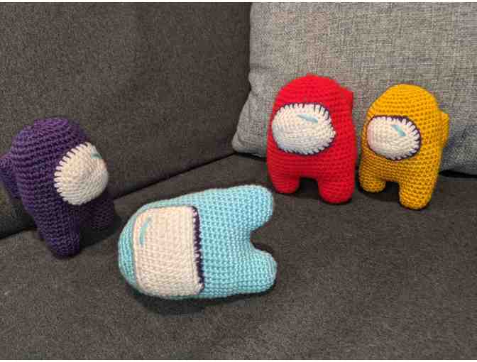 Get a set of 4 amigurumi crocheted "among us" characters from the owner of the Etsy store "YarnAnimalsBoutique" worth $100 in four fun colors: mint, yellow, red and purple.