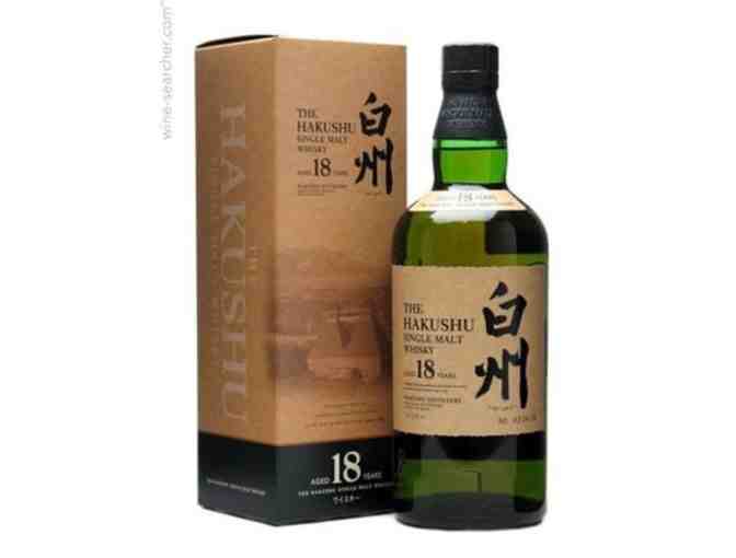 One 750 mL bottle (English language export packaging) of Suntory Hakushu 18-year single malt whisky. Production of this Japanese whisky has been discontinued along with many others for some time due to material shortages.