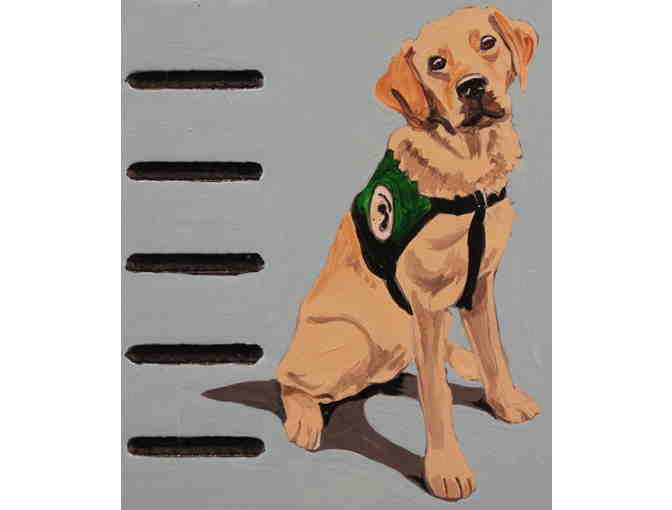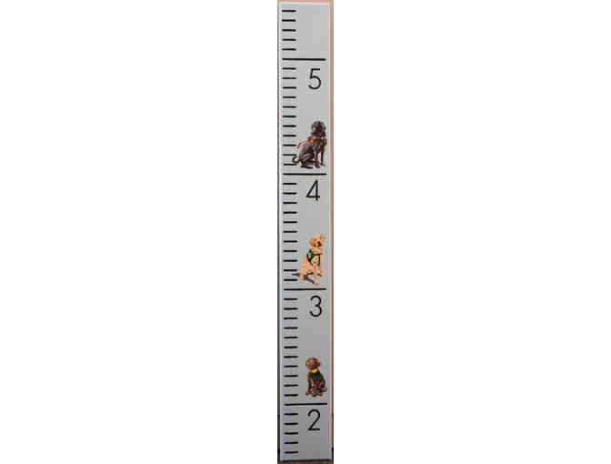Beautifully hand-crafted large wall ruler to capture your child through each growth spurt up to 5 ½ feet. The ruler is light blue color and is hand-painted with 3 adorable Seeing Eye® Labrador puppies (chocolate, yellow and black). Measures 5.5” by 48” (starts at 1.5 feet).