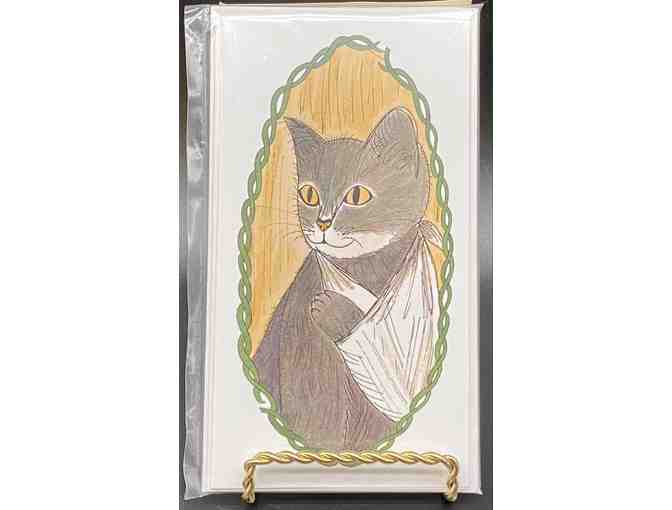Included are four sets of 3 cat themed blank notecards and envelopes: