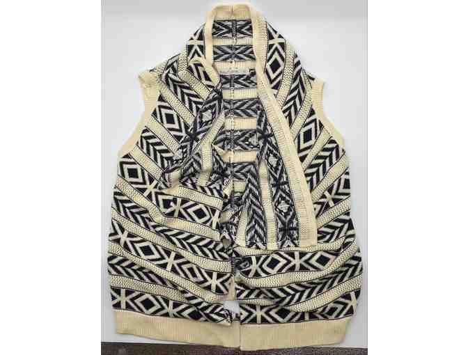 Spring and fall dressing just got a whole lot easier with this versatile long cardigan vest. The open front waterfall style is casual enough to pair with jeans yet stylish with its cream & black Nordic Fair Isle pattern. Soft lightweight yarn and sleeveless styling adds casual comfort and ease of movement to this medium sized vest. It's a no-brainer for brisk days when you want to layer but don't need the warmth of a sweater or jacket.