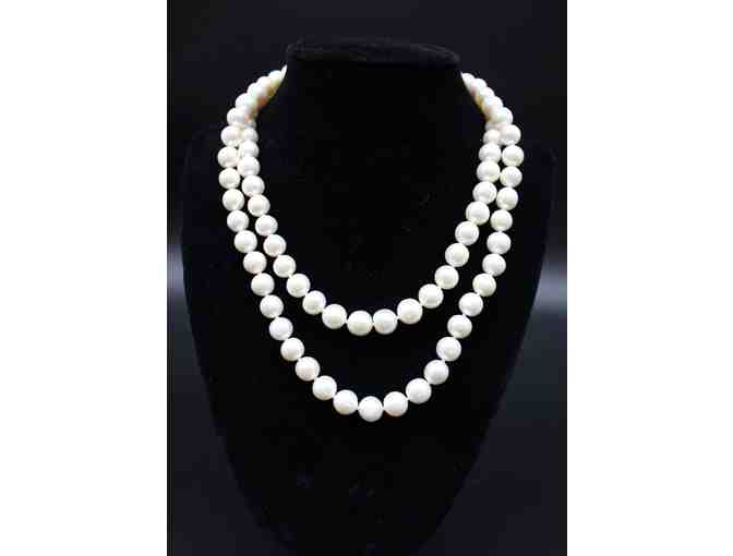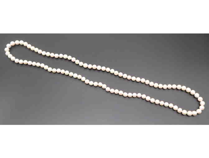 A simple, beautiful necklace of pearls will always be in style. This 32" strand of 8-9mm cultured freshwater pearls will make a dramatic statement on any occasion. As Jackie Kennedy said, "Pearls are always appropriate".