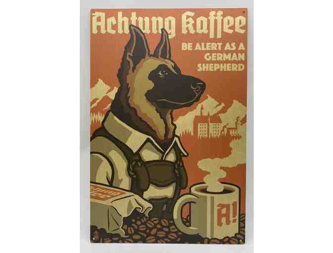 "Achtung Kaffee - Be Alert As A German Shepherd" Hand Painted Wood Sign