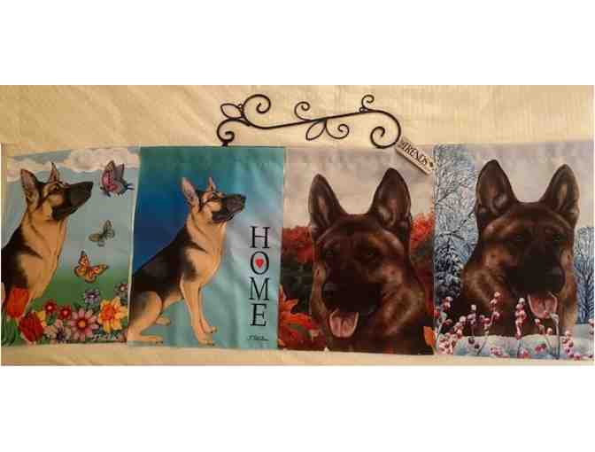 Celebrate the seasons with 4 German Shepherd garden flags and mounting holder: