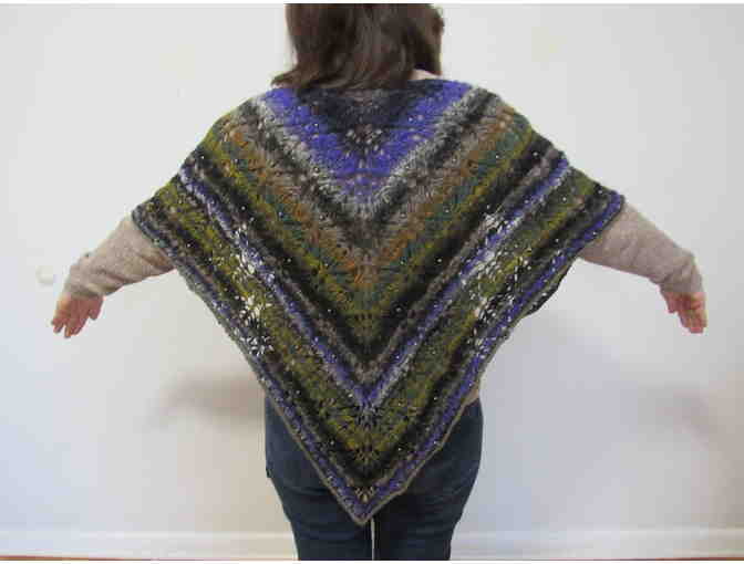 This beautiful handmade beaded shoulder shawl was crocheted with hematite beads to create weight as well as beauty. The weight helps to reduce anxiety, while making you feel like the weight of the world has been lifted off your shoulders. The beautiful stripes in purple, midnight blue, olive green, light brown, and muted mustard create an earth-tone joy.