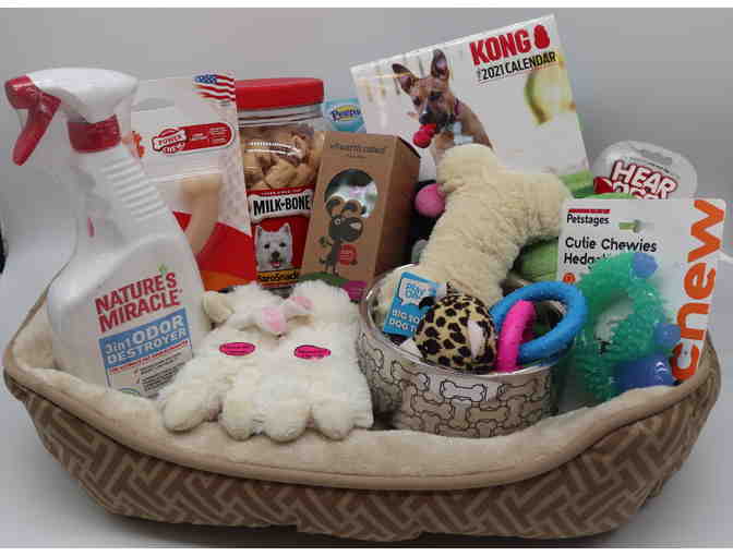 Doggie bed, bowl, raincoat, milk bones, earth rated bags, calendar, etc.