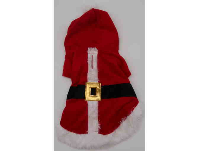 Your pup will be ready to cuddle up and relax in this plush tan dog bed well suited for a puppy or small dog. Included with the bed is a generous assortment of dog supplies including a bottle of Nature's Miracle 3 in 1 Odor Destroyer spray, a long lasting Dura Chew Power Chew bone, a large container of Milk-Bone MaroSnacks, Earth Rated poop bags that are 100% leak proof, a stainless dog bowl handsomely decorated in a black outlined dog bone shaped pattern, a Kong brand 2021 dog calendar and a fun assortment of other chew and plush toys. Also included is a Pet Supplies Plus extra large bright yellow doggie raincoat with a silver reflector stripe. Finally, an adorable dog jacket resembling Santa Claus' famous red and white coat with a built-in black fabric belt and shiny gold-colored buckle complete this marvelous set. Sleep, play, eat and be ready for the rain and Christmas - what else could a dog need?