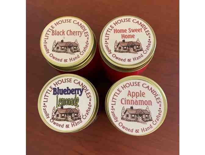 Make the world a better smelling place with these four 13oz. pint mason jar homemade candles from Little House Candles. These heavily scented candles are made the old fashion way, no fast cooling or forces injections for up to 100 hours of burn time. Four scents included: Black Cherry, Apple Cinnamon, Blueberry, Home Seet Home.
