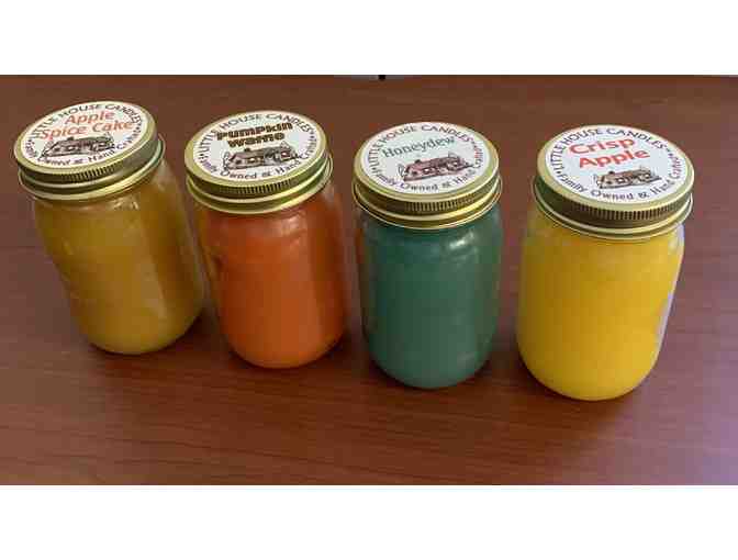 four 13 ounce. pint mason jar handmade candles from Little House Candles.