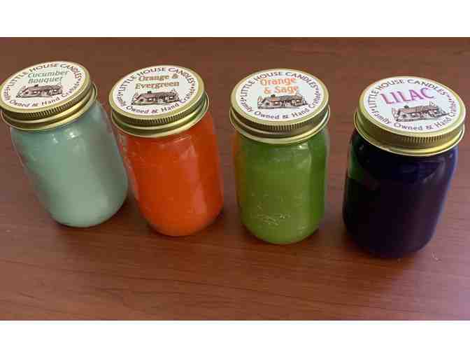 Make the world a better smelling place with these four, 13 ounce, pint mason jar homemade candles from Little House Candles. These heavily scented candles are made the old fashion way, no fast cooling or forces injections for up to 100 hours of burn time. Four scents included: Cucumber Bouquet, Orange & Spice, Orange & Evergreen, and Lilac
