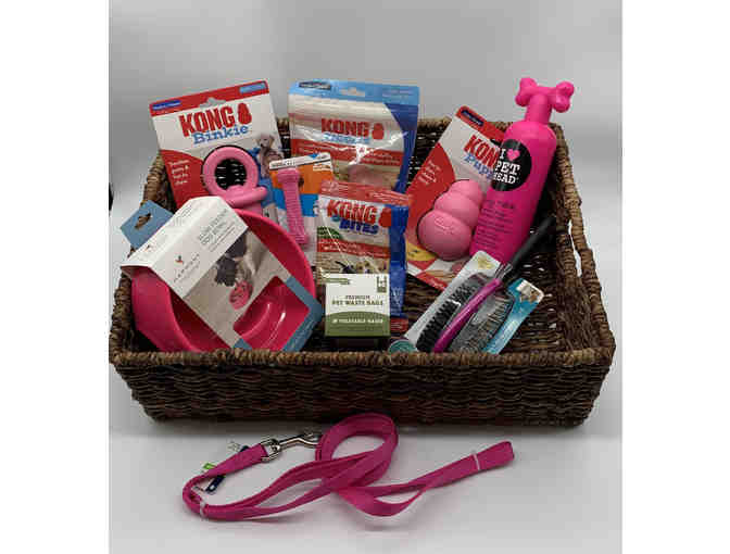 Shower your new puppy with this basket of fun pink toys. Items include: