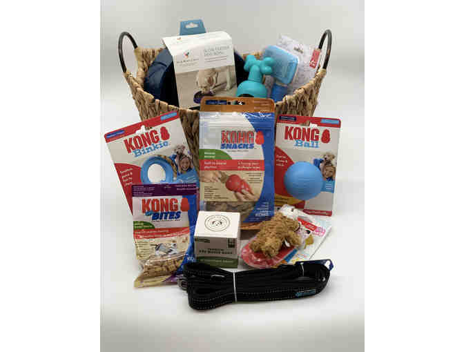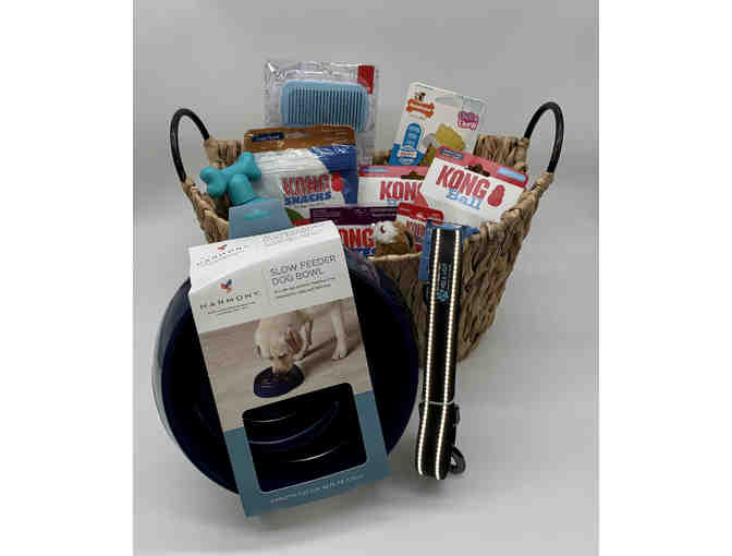 The perfect gift for the new boy in your home. Included in this basket of puppy essentials are: