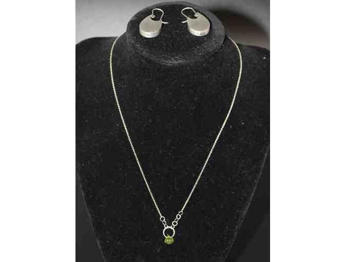 Silver Lotus Earrings by Bree Jewelry and Silver Peridot Necklace by Mashka Jewelry
