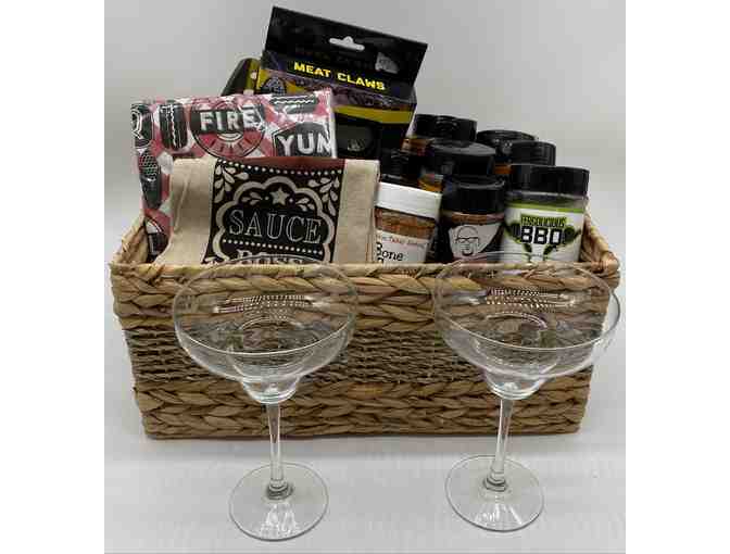 BBQ Grilling Basket with Spices, Tools, and 2 Margarita Glasses