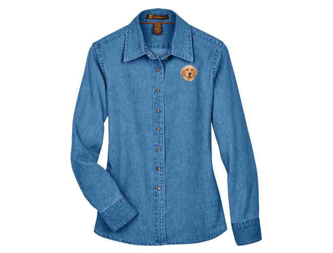 Bird Dawg Embroidery Denim Shirt w/ Golden Retriever - Women's Large