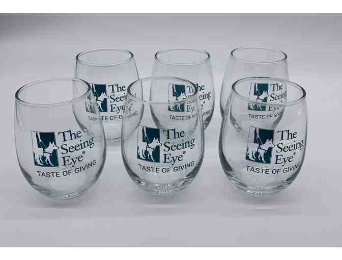 Love Seeing Eye Bling? How about toasting with two beautiful stemless wine glasses at your next event? Each wine glass boasts the Seeing Eye® Logo along with the saying “Taste of Giving”.