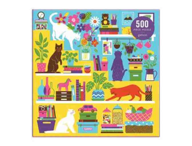 Piece together these two 500 Piece Puzzles filled with cats from Galison. This amusing illustration is a great family activity for adults and children to enjoy together. Puzzle pieces come packaged in a sturdy and easy-to-wrap box, perfect for gifting, reuse, and storage.