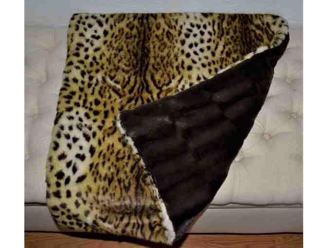 Soft and cuddly faux fur blanket for your 4 legged family members. Great for both dogs and cats. No furry friends? Also perfect to toss over your lap in the car, keeps the little one nice and warm in a stroller or car seat! Animals and humans love the soft feel of both the faux fur and the minky. A rich leopard pattern in a short fur. The stripes are in ivory and warm golden brown with dark chocolate brown spots. The backing is a super silky soft plush minky in chocolate brown. This blanket measures approximately 25" x 23", covers a standard couch cushion or chair. Protects you furniture, keeps fluffy warm and comfy, and looks great too! Easy to clean, just toss it in the washer, cold water, NO FABRIC SOFTENER, and let it air dry. This item has been handmade by me in my pet friendly, smoke free home.