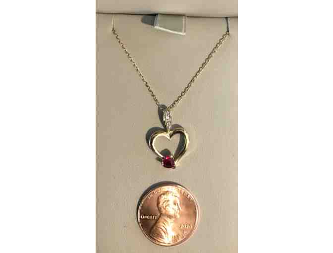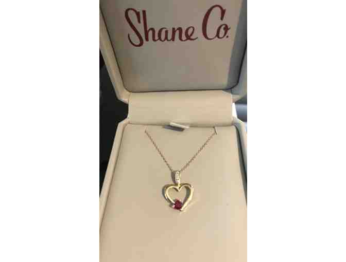 Shane Co. 14k gold heart-shaped pendant necklace with heart ruby and diamond accent. 18" 14k gold chain. New condition.