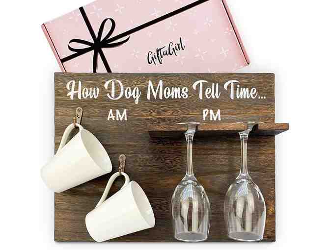 Coffee mug and wine glass rack! Perfect for the discriminating dog mom wine and coffee lover. Great for a kitchen, coffee bar, wine bar, dining room- or maybe even the She-Shed!